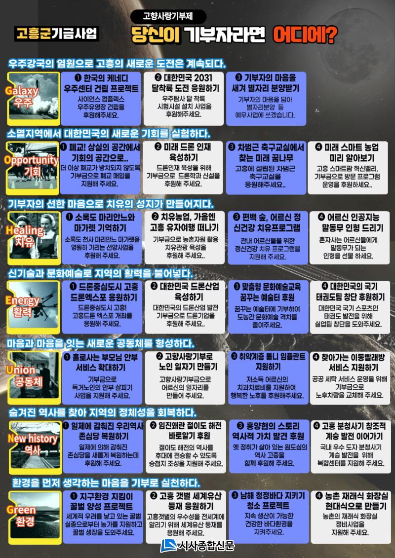 ÇÑÆí, °íÈﱺ °íÇâ»ç¶û±âºÎÁ¦ ±â±Ý»ç¾÷¿¡ ´ëÇÑ ¼¼ºÎ ³»¿ëÀº °íÈﱺ ȨÆäÀÌÁö ¶Ç´Â ÇàÁ¤¾ÈÀüºÎ °íÇâ»ç¶ûÀÌÀ½ ÁöÀÚü ¼Ò°³ ÆäÀÌÁö¿¡¼ È®ÀÎÇÒ ¼ö ÀÖ´Ù.