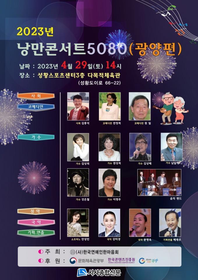 (»ç)Çѱ¹¿¬¿¹ÀÎÇѸ¶À½È¸¿¡¼ ÁÖÃÖÇÏ´Â ¡®2023³â ³¶¸¸ÄܼƮ 5080¡¯Àº Äڹ̵ð¾ð ±èÁ¾¼®ÀÇ »çȸ·Î ÁøÇàµÇ¸ç, ½ÄÀü Çà»ç·Î Áö¿ª °¡¼öµéÀÇ Èï°Ü¿î Æ®·ÎÆ® ¹«´ë°¡ ÁغñµÇ¾î ÀÖ´Ù.