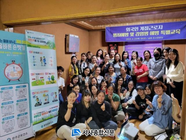 Áö³ 20ÀÏ ¿ÏÁÖ±ºÀº »ï·Ê Çϸ®°æ·Î´ç¿¡¼´Â ¹Ù»Û ³óÃÌ ÀϼÕÀ» µ½±â À§ÇØ 2¿ù Çʸ®ÇÉ¿¡¼ ÀÔ±¹ÇÑ ¿Ü±¹ÀÎ ±Ù·ÎÀÚ 27¸íÀ» ´ë»óÀ¸·Î ¹üÁË¿¹¹æ ±³À°°ú °¨¿°º´ ¿¹¹æÀ» À§ÇÑ ¼Õ ¾Ä±â(ºä ¹Ú½º)üÇè, ¾²·¹±â ºÐ¸®¼ö°Å µî »ýȰÁöµµ¸¦ ÁøÇàÇß´Ù.