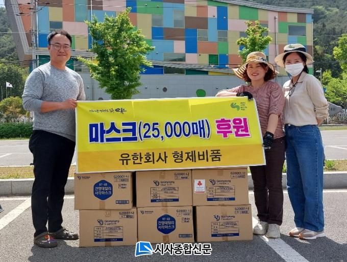 Áö³ 20ÀÏ, ¼±¾Ï»ç(ÁÖÁö ½Ã°¢½º´Ô)¿¡¼ °³±ÝºÒ»ç Á¡¾È½Ä ºÀÇà±â³äÀ¸·Î ¹é¹Ì 10kg 1,000Æ÷(3,000¸¸¿ø »ó´ç), (À¯)ÇüÁ¦ºñǰ(´ëÇ¥ °¿¬¼ö)¿¡¼ ¸¶½ºÅ© 25,000¸Å(480¸¸¿ø »ó´ç)¸¦, 23ÀÏ¿¡´Â »õ½Ã¸ðºÀ»çŬ·´(ȸÀå ÀÌÁ¤¼±)¿¡¼ ±ïµÎ±â 100»óÀÚ(1200kg)¸¦ ¼øÃµ½Ã¿¡ Àü´ÞÇß´Ù.