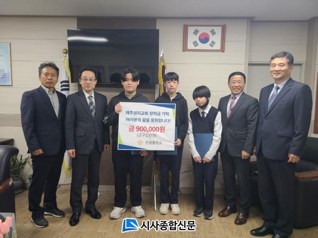 | ÇѸ²ÁßÇб³, Á¦ÁÖ¼ºÁö±³È¸ ÀåÇÐ±Ý Àü´Þ |
