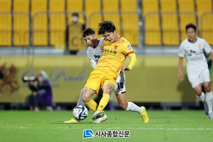 ±¤ÁÖ°¡ Àü¹ÝÀüÀ» ÁÖµµÇß´Ù. Àü¹Ý 9ºÐ ¾öÁö¼ºÀÇ ¿Þ¹ß Á߰Ÿ® ½´ÆÃÀÌ ºø³ª°¬°í, 11ºÐ µ¹ÆÄÇÏ¸é¼ ¶§¸° ¾Æ»ç´ÏÀÇ ¿Þ¹ß Á߰Ÿ® ½´ÆÃÀº Á¦ÁÖ °ñŰÆÛ ±èµ¿ÁØ ¼±¹æ¿¡ °É·È´Ù.