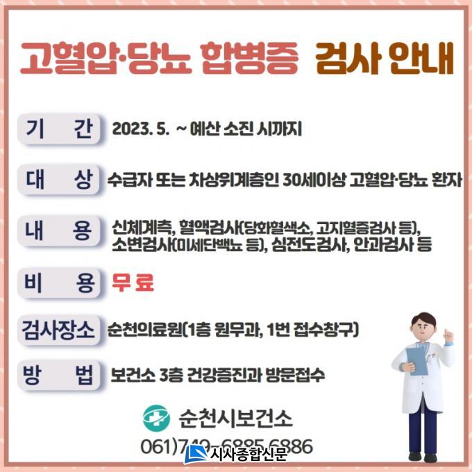 ¼øÃµ½Ãº¸°Ç¼Ò´Â ÇÕº´Áõ °Ë»ç Áö¿øÀ» À§ÇØ ¼øÃµÀÇ·á¿ø°ú ¾÷¹«Çù¾àÀ» ü°áÇÏ¿´À¸¸ç °Ë»ç¸¦ Èñ¸ÁÇÏ´Â »ç¶÷Àº º¸°Ç¼Ò °Ç°ÁõÁø°ú(¸¸¼ºÁúȯ°ü¸®ÆÀ)·Î ¹æ¹®ÇÏ¿© Á¢¼öÇÏ¸é µÈ´Ù.