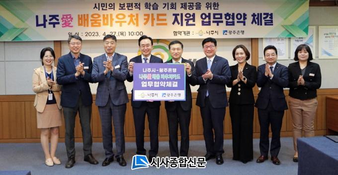 ³ªÁÖ½Ã(½ÃÀå À±º´ÅÂ)´Â 27ÀÏ ½Ãû»ç ÀÌȽǿ¡¼ ±¤ÁÖÀºÇà(ÀºÇàÀå °íº´ÀÏ)°ú ³ªÁÖäñ¹è¿ò¹Ù¿ìó Ä«µå Áö¿ø ¾÷¹«Çù¾àÀ» ü°áÇß´Ù°í ¹àÇû´Ù. ÀÌ »ç¾÷Àº ³ªÁÖ ½Ã¹Î ´©±¸³ª ´Ù¾çÇÑ ºÐ¾ß Æò»ýÇнÀ ±âȸ¸¦ º¸Àå¹ÞÀ» ¼ö ÀÖµµ·Ï ¿¬ 15¸¸¿øÀÇ ÇнÀ Ä«µå¸¦ Áö¿øÇÑ´Ù.