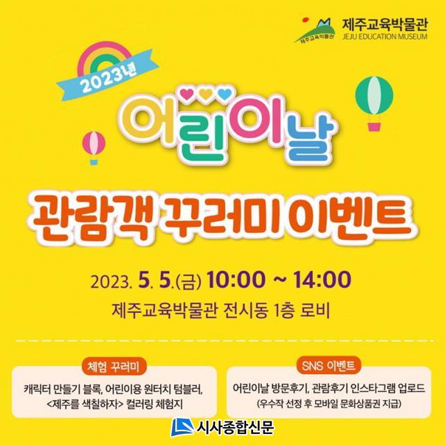 ¾î¸°À̳¯ °ü¶÷°´ ²Ù·¯¹Ì´Â 5¿ù 5ÀÏ ¿ÀÀü 10½ÃºÎÅÍ ¿ÀÈÄ 2½Ã±îÁö ¼±Âø¼øÀ¸·Î 200°³ ÇÑÁ¤ÇÏ¿© ¹èºÎÇÑ´Ù. ¾î¸°À̳¯ °ü¶÷°´ ²Ù·¯¹Ì´Â ¾î¸°À̵éÀÌ ÁÁ¾ÆÇÏ´Â Àαâ ij¸¯ÅÍ ¸¸µé±â ºí·Ï, ¾î¸°ÀÌ¿ë ¿øÅÍÄ¡ ÅÒºí·¯, Á¦ÁÖ±³À°¹Ú¹°°üÀÌ Á¦ÀÛÇÑ Ä÷¯¸µ üÇèÁöÀÎ <Á¦ÁÖ¸¦ »öÄ¥ÇÏÀÚ> µîÀ¸·Î ±¸¼ºµÈ´Ù.