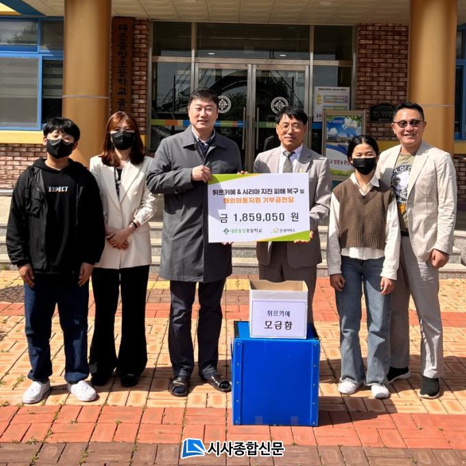 [½Ã»çÁ¾ÇսŹ® = ¿À½ÂÅà ±âÀÚ] ±Â³×À̹ö½º È£³²º»ºÎ(º»ºÎÀå Á¤¿ëÁø)´Â ´ëÃÌÁß¾ÓÃʵîÇб³(±³Àå ±¸¿µÃ¶)°ú ÇÔ²² ÈÄ¿ø±Ý Àü´Þ½ÄÀ» °¡Á³´Ù°í 28ÀÏ ¹àÇû´Ù. À̳¯ Àü´ÞµÈ ÈÄ¿ø±ÝÀº ´ëÃÌÁß¾ÓÃʵîÇб³ Çлýµé°ú Çкθð, ±³»ç°¡ ÇÔ²² ÁøÇàÇÑ ¾Ë¶ã½ÃÀå ÅëÇØ ¸¶·ÃµÈ ¼öÀͱÝÀ¸·Î ¸¶·ÃµÆ´Ù.