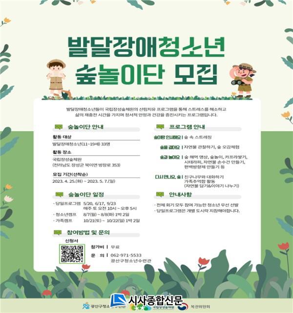 ±¤»ê±¸Ã»¼Ò³â¼ö·Ã°ü °ü°èÀÚ´Â ¡°¹ß´ÞÀå¾Öû¼Ò³âµéÀÌ ½£¼Ó¿¡¼ Áñ°Å¿î ½Ã°£À» º¸³»¸ç ÀÚ¿¬°ú Ä£ÇØÁö°í Ä¡À¯¸¦ ¹ÞÀ» ¼ö ÀÖ´Â ½Ã°£ÀÌ µÉ °Í °°´Ù¡±¸ç ¡°¾ÕÀ¸·Îµµ ±¹¸³À强½£Ã¼¿ø°ú ÇÔ²² ¹ß´ÞÀå¾Öû¼Ò³âµéÀ» À§ÇÑ ´Ù¾çÇÑ È°µ¿ÀÌ À̾îÁö±æ ±â´ëÇÑ´Ù.¡±¹àÇû´Ù.