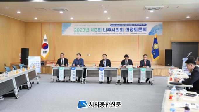 ÀÇÁ¤Åä·Ðȸ ÁÂÀåÀ» ¸ÃÀº ³ªÁÖ½ÃÀÇȸ ±è°Á¤ ÀÇ¿øÀº ¡°Áö¿ªÀÇ ÁÖ¿ä Çö¾È¿¡ ´ëÇÑ Á¤Ã¥ °³¹ß ¸ñÀûÀ¸·Î ÀÇÁ¤Åä·Ðȸ¸¦ ÁøÇàÇß°í, ±× ÀÏȯÀ¸·Î ¿À´Ã ³ªÁÖÀÇ ¿¡³ÊÁö ºÎ¹®¿¡ ´ëÇÏ¿© Àü¹®°¡µéÀÇ ÀǰßÀ» µè°í ÁÁÀº ÀǰßÀ» µè±â À§ÇÏ¿© ÀÌ ÀÚ¸®¸¦ ¸¶·ÃÇß´Ù.¡±°í ¼³¸íÇß´Ù.