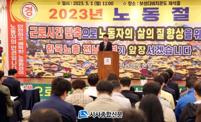 [½Ã»çÁ¾ÇսŹ® = ¿À½ÂÅà ±âÀÚ] Àü¶ó³²µµ´Â 1ÀÏ º¸¼º ´ÙºñÄ¡Äܵµ¿¡¼ 200¸¸ µµ¹Î°ú ÇÔ²² ³ëµ¿ÀÇ Âü¶æÀ» »õ±â¸ç ³ëµ¿ Á¸Áß»çȸ ½ÇÇö°ú ³ëµ¿ÀÚ ±ÇÀÍ ÁõÁøÀ» À§ÇÑ Á¦133ȸ ³ëµ¿Àý ±â³ä´ëȸ¸¦ °³ÃÖÇß´Ù.