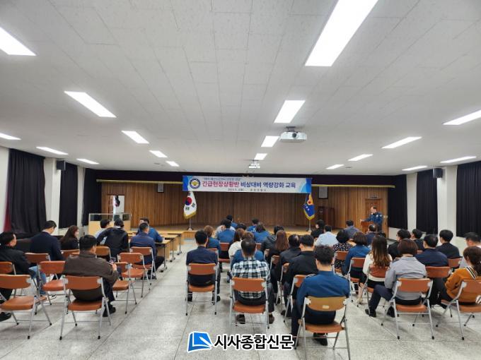 À̹ø ±³À°Àº ÀÌÅ¿ø Âü»ç¸¦ °è±â·Î Å×·¯¡¤Àç³ »óȲ ¹ß»ý ½Ã ½Å¼ÓÇÑ »óȲÀüÆÄ ¹× ü°èÀûÀÎ ÇöÀå Á¶Ä¡ ¹æ¹ý µîÀ» ÇöÀå ±³À°À» ÅëÇØ ÇöÀå ´ëÀÀ ¿ä¿øÀÇ ÀÓ¹« ¼÷Áö ¹× Á÷¹«¿ª·®À» °ÈÇϱâ À§ÇØ ½Ç½ÃÇÑ °ÍÀ¸·Î, ºñ»ó½Ã Ã⵿ÇÏ´Â ±ä±ÞÇöÀå»óȲ¹Ý Á÷¿øµéÀ» ´ë»óÀ¸·Î Å×·¯¡¤Àç³ À¯Çü, »óȲº° Ã⵿ Àåºñ ¹× Ãʵ¿Á¶Ä¡ ¿ä·É, ºñ»óµ¿º¸½Ã½ºÅÛ »ç¿ë ¹æ¹ý µîÀ» ±³À°Çϰí ÇÊ¿äÇÑ ´ëÅ×·¯¡¤Àç³ Àåºñ, Ã⵿ Â÷·® ÁöÁ¤, ÇöÀå ÁöÈÖ ½Ã½ºÅÛ µîÀ» Á¤ºñÇÏ¿´À¸¸ç ¶ÇÇÑ ½ÇÁ¦ »óȲÀ» °¡Á¤ÇÑ ÈÆ·ÃÀ» ½Ç½ÃÇÏ´Â µî Å×·¯¡¤Àç³ »çÅ¿¡ ½Å¼Ó¡¤Á¤È®ÇÏ°Ô ´ëóÇÏ¿© ½Ã¹ÎµéÀÇ ¾ÈÀüÀ» Áöų ¼ö ÀÖµµ·Ï ÇÏ¿´´Ù.