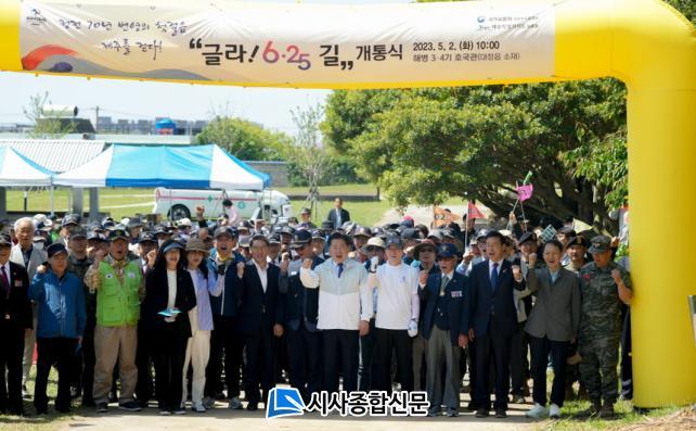 ¡®±Û¶ó! 6¡¤25±æ¡¯ÀÇ °³Åë½ÄÀÌ 2ÀÏ ¿ÀÀü 10½Ã ÇØº´ 3¡¤4±â È£±¹°ü¿¡¼ °³ÃֵƴÙ. ¡®Á¤Àü 70³â ¹ø¿µÀÇ Ã¹°ÉÀ½ Á¦ÁÖ¸¦ °È´Ù!¡¯¸¦ ½½·Î°ÇÀ¸·Î ³»°Ç À̳¯ Çà»ç¿¡´Â ¿À¿µÈÆ Áö»ç, ±èȲ±¹ µµÀÇȸ ºÎÀÇÀå, ¿ÀÁ¤ÀÚ ±³À°Ã» Á¤Ã¥±âȹ½ÇÀå, À§¼º°ï ±¹È¸ÀÇ¿ø, ÀÌÁ¾¿ì ¼±ÍÆ÷½ÃÀå, Áø°Çö ±¹¸³Á¦ÁÖÈ£±¹¿øÀå, ¹è¹®È Á¦ÁÖµµ º¸ÈÆ´ÜüÇùÀÇȸÀåÀ» ºñ·ÔÇØ µµ³» ±â°ü´ÜüÀå, º¸ÈÆ´Üü, ´ëÁ¤À¾ ÁÖ¹Î, ±º °ü°èÀÚ µî 300¿©¸íÀÌ Âü¼®Çß´Ù.