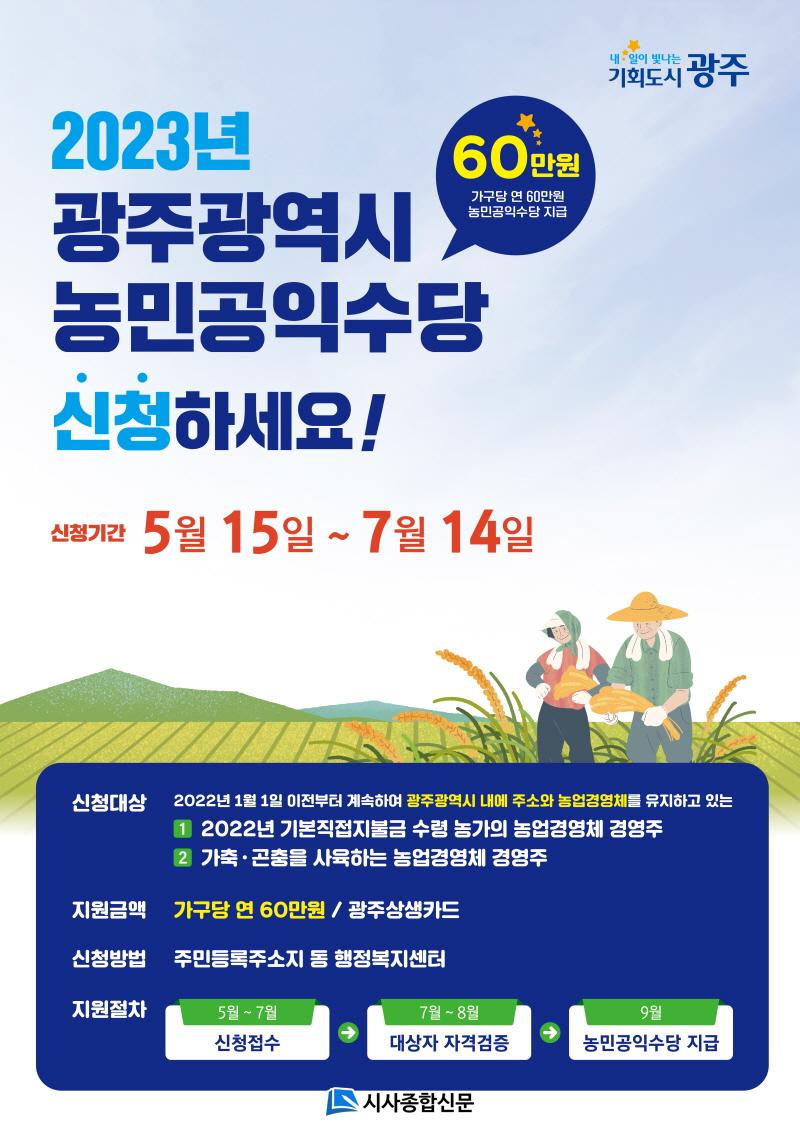 ¡®³ó¹Î°øÀͼö´ç¡¯Àº ³ó¹ÎÀÇ »îÀÇ Áú Çâ»ó°ú ³ó¾÷ÀÇ °øÀÍ °¡Ä¡¸¦ ÀÎÁ¤Çϰí À¯Áö¡¤ÁõÁøÇϱâ À§ÇØ µµÀԵƴÙ. Áö³ 2¿ù ¡®±¤Áֽà ³ó¹Î°øÀͼö´ç Áö±Þ¿¡ °üÇÑ Á¶·Ê¡¯¸¦ Á¦Á¤ÇØ Áö±Þ±Ù°Å¸¦ ¸¶·ÃÇϰí, Ã߰濹»êÀ¸·Î »ç¾÷ºñ¸¦ È®º¸ÇØ º»°Ý ½ÃÇàÇÏ´Â ½Å±Ô»ç¾÷ÀÌ´Ù.