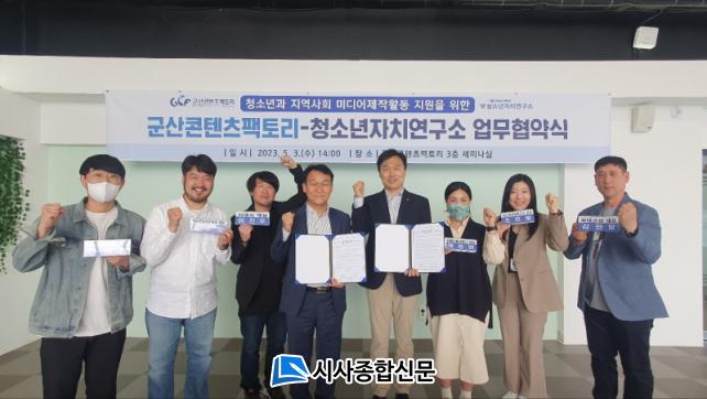 ±º»êÄÜÅÙÃ÷ÆÑÅ丮¿¡¼ ÁøÇàµÈ ÀÌ ³¯ ¾÷¹«Çù¾à½Ä¿¡´Â ¹ÚÈ«¼ø ¹®È¿¹¼ú°úÀå, Á¤°ÇÈñ û¼Ò³âÀÚÄ¡¿¬±¸¼ÒÀåÀ» ºñ·ÔÇØ û¼Ò³âÀÚÄ¡¿¬±¸¼Ò ¹Ìµð¾îÀ§¿øÈ¸ ¼Ò¼Ó À§¿øµéÀÌ ÇÔ²² Âü¼®ÇØ Ã»¼Ò³âÀÇ ¹Ìµð¾î ¿ª·® °È ¹× Áö¿ªÄÜÅÙÃ÷ Á¦ÀÛ È°¼ºÈ¸¦ À§ÇÑ »óÈ£ Çù·Â¹æ¾ÈÀ» ³íÀÇÇß´Ù.