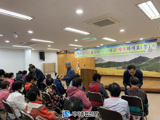 ¹æÁö¿µ ºÎ»ê¸éÀåÀº ¡°¾î¹öÀ̳¯À» ¸Â¾Æ Áö¿ª ±â°ü¡¤»çȸ ´Üü°¡ Çù·ÂÇÏ¿© ¾î¸£½Åµé¿¡°Ô °¨»ç¿Í ÃàÇÏÀÇ ¸¶À½À» Àü´ÞÇϰíÀÚ Çà»ç¸¦ °³ÃÖÇÏ°Ô µÇ¾ú´Ù.¡±¸ç, ¡°¾ÕÀ¸·Îµµ ¾î¸£½ÅµéÀÌ ÇູÇÑ ³ëÈĸ¦ º¸³¾ ¼ö ÀÖµµ·Ï °Ç°°ú º¹Áö µî¿¡ ¼ÒȦÇÔ ¾øÀÌ Ã¬°Ü ³ª°¡°Ú´Ù¡±°í ¸»Çß´Ù.