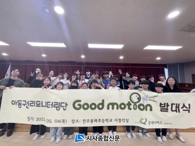±Â³×À̹ö½º ÀüºÏÁߺÎÁöºÎ ¾Æµ¿±Ç¸®¸ð´ÏÅ͸µ´Ü ±Â¸ð¼Ç(Good Motion)Àº ¿ÃÇØ ÀüÁÖ¿ë¿ÍÃʵîÇб³ Çлý 26¸íÀ» ¼±¹ßÇß´Ù, ¹ß´ë½ÄÀº ¾Æµ¿±Ç¸®¸ð´ÏÅ͸µ´Ü¿ø 26¸í, ¸àÅä 5¸í, ÀüÁÖ¿ë¿ÍÃʵîÇб³ °ü°èÀÚ 2¸í, ±Â³×À̹ö½º ÀüºÏÁߺÎÁöºÎ Á÷¿ø 3¸íÀÌ ÇÔ²² Âü¼®ÇÑ °¡¿îµ¥ ¾Æµ¿±Ç¸®¸ð´ÏÅ͸µ´Ü Ȱµ¿ ¾È³», ÀÓ¸íÀå Àü´Þ, ¾Æµ¿±Ç¸® ±âº»±³À°, Ȱµ¿ ÁÖÁ¦ ¾È³», ¼±¼¹® ÀÛ¼º ¼øÀ¸·Î ÁøÇàµÆ´Ù.