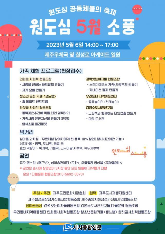 À۳⿡ ÀÌ¾î ¿ÃÇØµµ ¿î¿µÇÏ´Â Á¦Áֽà ĥ¼º·Î Áö¿ª°øµ¿Ã¼°¡ ÇÔ²² ¸ð¿© ¸¸µå´Â¡®Á¦ÁÖ ¿øµµ½É ¼Òdz¡¯Çà»ç´Â 5¿ùºÎÅÍ 11¿ù±îÁö(8¿ù Á¦¿Ü) ¸Å¿ù ù°ÁÖ Åä¿äÀÏ ¿ÀÈÄ 2½ÃºÎÅÍ 5½Ã±îÁö Ä¥¼º·Î ¾ÆÄÉÀ̵å ÀÏ¿ø¿¡¼ ÁøÇàµÉ ¿¹Á¤ÀÌ´Ù.