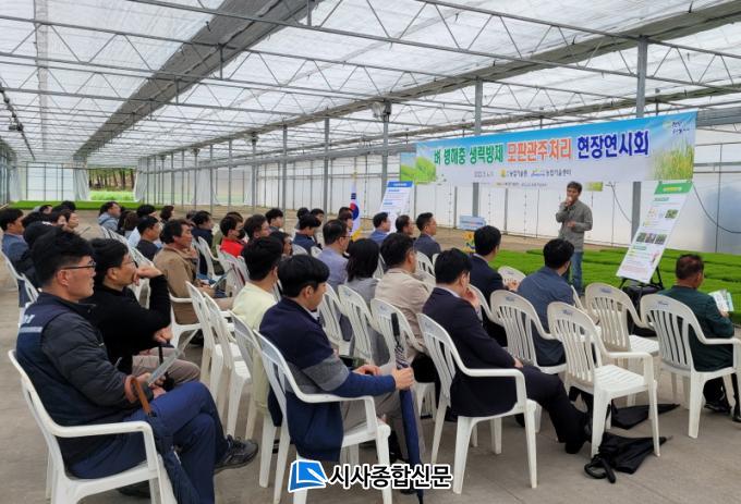 Àü³²³ó¾÷±â¼ú¿ø ÁÖ°üÀ¸·Î ÃßÁøµÈ À̹ø ¿¬½Ãȸ¿¡´Â ¸ðÆÇ °üÁÖ󸮿¡ °ü½É ÀÖ´Â Áö¿ª ³ó°¡¿Í ³óÇù °ü°èÀÚ, ´ã´ç °ø¹«¿ø µî 100¿© ¸íÀÌ Âü¼®Çß´Ù. ±â¼ú ½Ã¿¬¿¡ À̾î ÁúÀÇÀÀ´ä ½Ã°£À» °¡Áø ³ó¾÷ÀεéÀº ¡°ÀÌ»ó ±âÈÄ·Î ÀÎÇØ º´ÇØÃæ ¹ß»ý°ú ¹æÁ¦½Ã±â ¿¹ÃøÀÌ ¾î·Á¿ü´Âµ¥, °üÁÖó¸® ±â¼úÀ» ÅëÇØ ºÎ´ãÀ» ´ú°Ô µÆ´Ù¡±¸ç È£ÆòÇß´Ù.