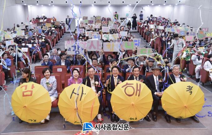 ¡®»ç¶ûÇØ¿ä! °¨»çÇØ¿ä! ¾î¹öÀÌ ´ç½ÅÀ» Á¸°æÇÕ´Ï´Ù¡¯¶ó´Â ½½·Î°ÇÀ¸·Î ¿¸° À̳¯ ±â³äÇà»ç´Â Âü¼® ¾î¸£½Åµé¿¡°Ô »ç¶ûÀÇ Ä«³×ÀÌ¼Ç ´Þ¾Æµå¸®±â, À¯°øÀÚ ½Ã»ó, ±â³ä»ç, ¾î¹öÀÌ ÀºÇý¿¡ °¨»çÇÏ´Â ¸¶À½À» ´ãÀº ÇÕâ, ¹®È°ø¿¬ ¼øÀ¸·Î ÁøÇàµÆ´Ù.