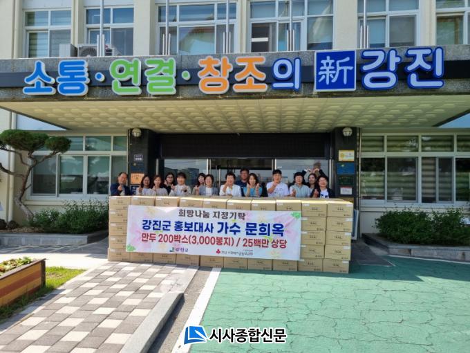 Àü³² °Áø±ºÀº ÀüÅë Æ®·ÎÆ® ¿©Á¦ ¹®Èñ¿Á ¾¾¿Í ³²Æí ±è¾çÀÏ ¾¾°¡ Áö¿ª º¹Áö½Ã¼³¿¡ 2,500¸¸ ¿ø »ó´çÀÇ ¸¸µÎ 200¹Ú½º(3,000 ºÀÁö)¸¦ Àü´ÞÇß´Ù°í 10ÀÏ ¹àÇû´Ù.
