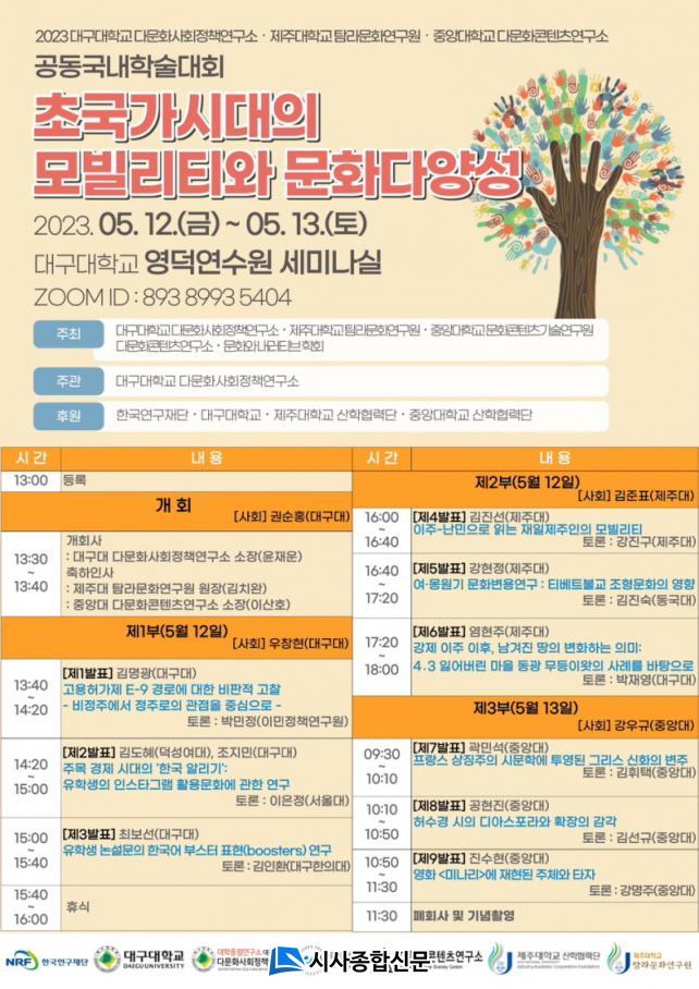 [½Ã»çÁ¾ÇսŹ® = °í¼º¹Î ±âÀÚ] Á¦ÁÖ´ëÇб³ Ž¶ó¹®È¿¬±¸¿ø(¿øÀå ±èÄ¡¿Ï)Àº ´ë±¸´ëÇб³ ´Ù¹®È»çȸÁ¤Ã¥¿¬±¸¼Ò(¼ÒÀå À±Àç¿î), Áß¾Ó´ëÇб³ ´Ù¹®ÈÄÜÅÙÃ÷¿¬±¸¼Ò(¼ÒÀå ÀÌ»êÈ£)¿Í ¿À´Â 12~13ÀÏ ¾çÀϰ£ ´ë±¸´ë ¿µ´ö¿¬±¸¿ø¿¡¼ °øµ¿ Çмú´ëȸ¸¦ °³ÃÖÇÑ´Ù.
