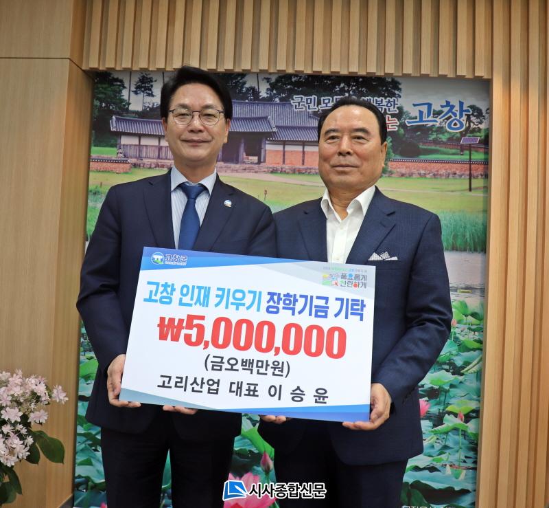 Áö³ 11ÀÏ ÁøÇàµÈ ÀåÇÐ±Ý ±âŹ½Ä¿¡´Â °í¸®»ê¾÷ ´ëÇ¥ À̽ÂÀ± 500¸¸¿ø, ¢ß¼¼¿òÁ¾ÇհǼ³ ÇöÀå¼ÒÀå ÃÖµ¿ÇÊ 300¸¸¿øÀ» ±âŹÇÏ¿© °íⱺ Áö¿ªÀÎÀç À°¼º¿¡ ÈûÀ» º¸ÅÉ´Ù.