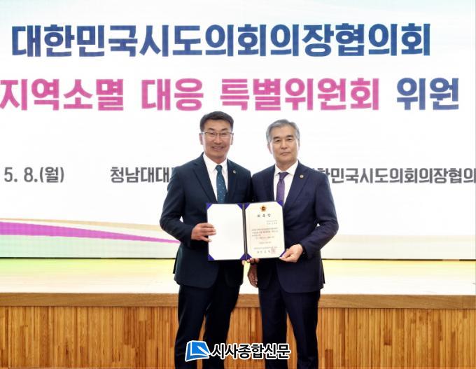 ´ëÇѹα¹½ÃµµÀÇȸÀÇÀåÇùÀÇȸ(ȸÀå ±èÇö±â ¼¿ïƯº°½ÃÀÇȸÀÇÀå)´Â Áö³ 8ÀÏ, ÃæºÏ ûÁֽà ¼ÒÀç û³²´ë ´ëÅë·É±â³ä°ü¿¡¼ Áö¿ª¼Ò¸ê ´ëÀÀ Ưº°À§¿øÈ¸ À§¿ø À§Ã˽ÄÀ» °®°í °¢ ½ÃµµÀÇȸ ÀÇ¿ø 1¸í¿¡°Ô À§ÃËÀåÀ» ¼ö¿©Çß´Ù.