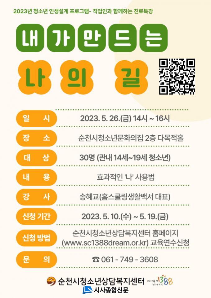 | ¼øÃµ½Ã, ³»°¡ ¸¸µå´Â ³ªÀÇ ±æ! û¼Ò³â Áø·ÎƯ° ¿¾î ¿À´Â 26ÀÏ Ã»¼Ò³â¹®ÈÀÇÁý ´Ù¸ñÀûȦ¿¡¼ Ư° ¿·Á |