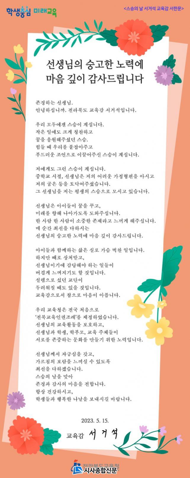 ¸¶Áö¸·À¸·Î ¼ ±³À°°¨Àº ¡°¼±»ý´Ô²²¼ ÀÚ±à½ÉÀ» °®°í, °¡¸£Ä§ÀÇ º¸¶÷À» ´À³¢½Ç ¼ö ÀÖµµ·Ï ÃÖ¼±À» ´ÙÇϰڴ١±°í µ¡ºÙ¿´´Ù.