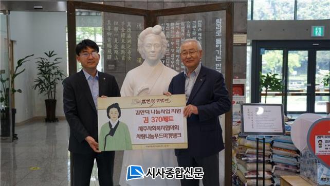 [½Ã»çÁ¾ÇսŹ® = °í¼º¹Î ±âÀÚ] ±è¸¸´ö±â³ä°ü(°üÀå °¿µÁø)Àº Áö³ 10ÀÏ Á¦ÁÖÆ¯º°ÀÚÄ¡µµ»çȸº¹ÁöÇùÀÇȸ(ȸÀå °í½ÂÈ)°¡ ¿î¿µÇÏ´Â »ç¶û³ª´®Çªµå¸¶ÄÏ¡¤¹ðÅ©¿¡ µµ½Ã¶ô ±è 370¼¼Æ®¸¦ Àü´ÞÇß´Ù.