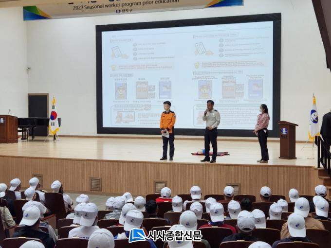 ¿Ïµµ¼Ò¹æ¼´Â À̹ø ÀÔ±¹À¸·Î ³ó¾îÃÌÀÇ °íÁúÀûÀÎ ³ó¡¤¾î¹ø±â ÀϼպÎÁ·¿¡ µµ¿òÀÌ µÉ Çʸ®ÇÉ ±¹Àû ¿Ü±¹ÀÎ °èÀý±Ù·ÎÀÚ 186¸í¿¡°Ô ¼Ò¹æ°üÀÌ Á÷Á¢ ¿µ¾î·Î ¼Òȱâ»ç¿ë¹ý, ½ÉÆó¼Ò»ý¼ú, ÈÀ翹¹æ¼öÄ¢ µî ¾ÈÀü±³À°À» ÁøÇàÇÑ À̹ø ±³À°Àº ¹®È¡¤¾ð¾î¡¤¼ÒÅëÀÇ ºÎÀç·Î ³»±¹Àο¡ ºñÇØ ¼Ò¹æ¾ÈÀüÀǽÄÀÌ »ó´ëÀûÀ¸·Î ºÎÁ·ÇÒ ¼ö ¹Û¿¡ ¾ø´Â À̵鿡°Ô ³»¡¤¿Ü±¹ÀÎÀÌ ´õºÒ¾î ¾ÈÀüÇÑ ±Ù·Îȯ°æÀ» ¸¸µé±â À§ÇØ ¸¶·ÃµÇ¾ú´Ù.