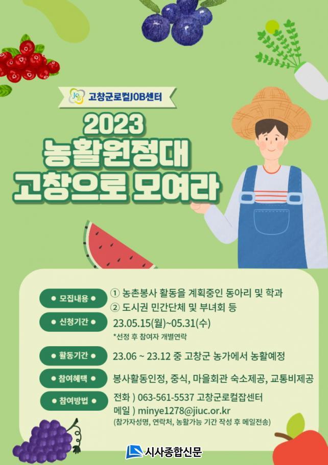 [½Ã»çÁ¾ÇսŹ® = ¿À½ÂÅà ±âÀÚ] °íⱺ·ÎÄÃJOB¼¾ÅͰ¡ ¿µ³óö ±º³» ³ó°¡ ÀÏ¼Õ ºÎÁ· ÇØ¼Ò¸¦ À§ÇØ 2023³â ÀÎÁ¢ µµ½Ã±Ç ³óȰ¿øÁ¤´ë¸¦ ¸ðÁýÇϱâ·Î Çß´Ù.