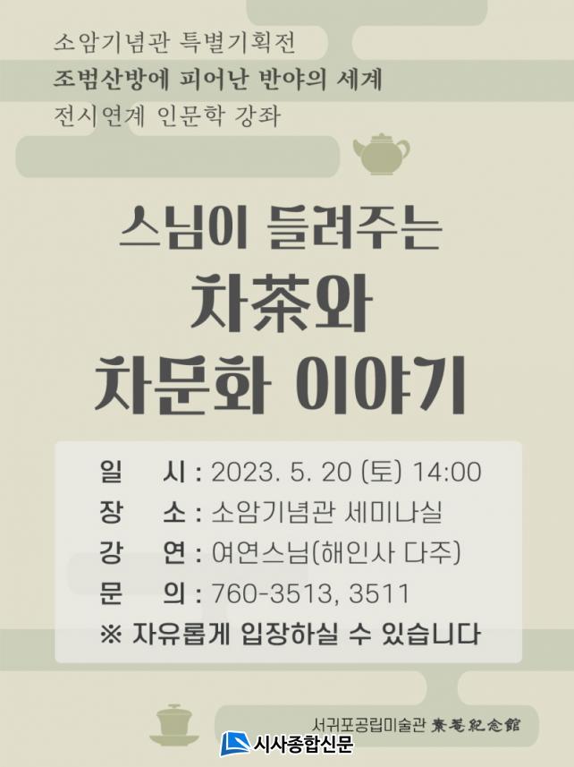ÇÑÆí, ¼±ÍÆ÷½Ã °ü°èÀڴ¡°¼Ò¾Ï±â³ä°ü¿¡¼ ÇöÀç ÁøÇàµÇ°í ÀÖ´Â <Á¶¹ü»ê¹æ¿¡ ÇÇ¾î³ Úõ容ݾßÀÇ Çâ±â>¿Í 5¿ù ºÎó´Ô ¿À½Å ³¯À» ¸ÂÀÌÇÏ¿© Ưº°È÷ <½º´ÔÀÌ µé¿©ÁÖ´Â Â÷Òþ¿Í Â÷¹®È À̾߱â>¶ó´Â ÁÖÁ¦·Î °Á¸¦ ÁغñÇß´Ù.¡±°í ¹àÈ÷¸ç ¡°ºÒ±³¿¡¼´Â¡®¼±´ÙÀϹÌàÉÒþìéÚ«¡¯¶ó ÇÏ¿© ¼öÇàÇÏ´Â °Í°ú Â÷¸¦ ¸¶½Ã´Â °ÍÀº °°Àº Àǹ̷Π¿©±â´Â ¸¸Å Àü½Ã °¨»ó°ú ÇÔ²² °Á¸¦ µè´Â´Ù¸é ´õ¿í ¶æ±íÀº °æÇèÀÌ µÉ °Í.¡±À̶ó°í ±â´ë¸¦ ÀüÇß´Ù.