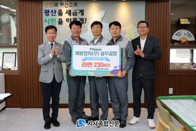 ¼¼¹æÀüÁö(ÁÖ) ±¤ÁÖ°øÀåÀº 17ÀÏ ±¤»ê±¸Ã»¿¡¼ Àü´Þ½ÄÀ» °®°í ¶ó¸é230»óÀÚ(500¸¸ ¿ø »ó´ç)¸¦ Åõ°Ô´õ±¤»ê ³ª´®¹®ÈÀç´Ü¿¡ ±âŹÇß´Ù.