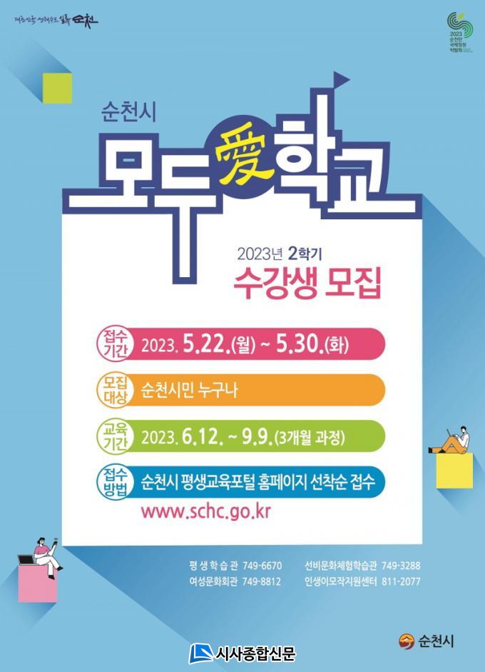 ¼ö° ½ÅûÀº ¼øÃµ½ÃÆò»ý±³À°Æ÷ÅÐ ´©¸®Áý(www.schc.go.kr)¿¡¼ ¼±Âø¼øÀ¸·Î Á¢¼öÇÏ¸ç ¼øÃµ½Ã¹ÎÀÌ¸é ´©±¸³ª °¡´ÉÇÏ´Ù. ±âŸ ÀÚ¼¼ÇÑ »çÇ×Àº ¼øÃµ½Ã Æò»ý±³À°°ú(061-749-6670)¿¡ ¹®ÀÇÇÏ¸é µÈ´Ù.