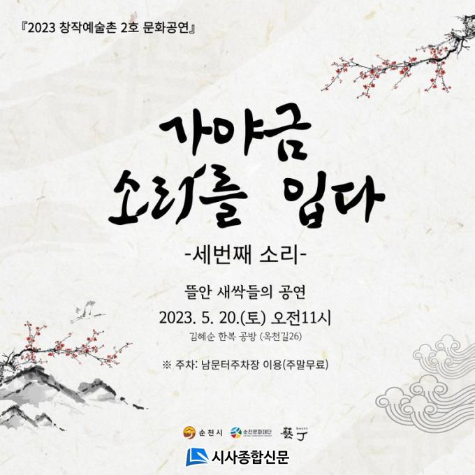 | ¼øÃµ¹®ÈÀç´Ü, ¡®°¡¾ß±Ý ¼Ò¸®¸¦ ÀÔ´Ù¡¯ ¾î¸°ÀÌ ±¹¾Ç°ø¿¬ °³ÃÖ 20ÀÏ(Åä) ¿ÀÀü 11½Ã <°¡¾ß±Ý ¼Ò¸®¸¦ ÀÔ´Ù> °ø¿¬ °³ÃÖ