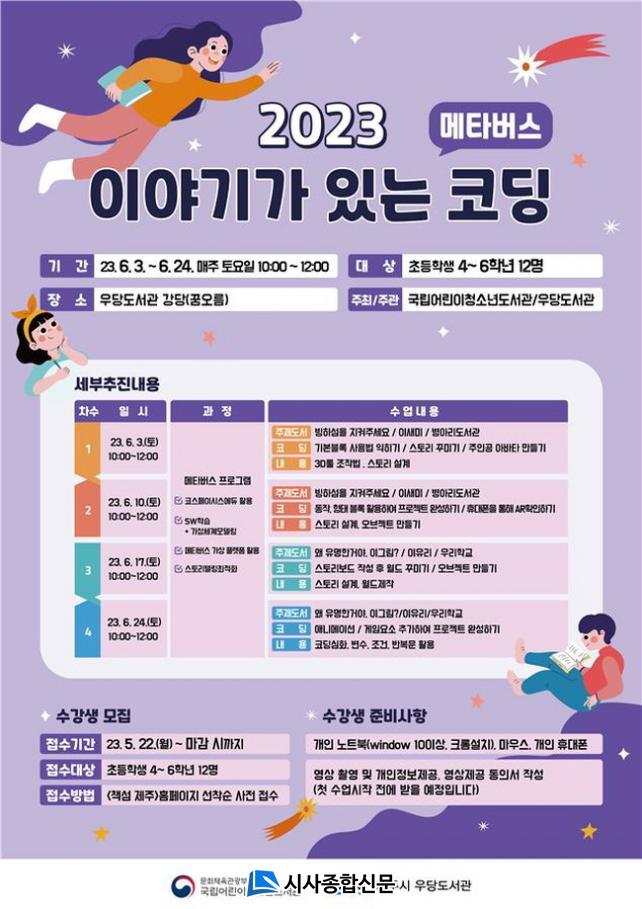 ¿ì´çµµ¼°üÀº ÃʵîÇб³ 4Çгâ~6ÇгâÀ» ´ë»óÀ¸·Î »ç¼¿Í ÇÔ²² ÁÖÁ¦µµ¼¸¦ Àаí, ÄÚµù Àü¹®°»ç·ÎºÎÅÍ Ã¥ ¼Ó ij¸¯ÅÍ¿Í »ç¹°À» ÄÚµù½Ç½À¿¡ Àû¿ëÇÏ¿© Ã¥°ú ÄÚµùÀ» ¿¬°èÇÑ ÇÁ·Î±×·¥À¸·Î 6¿ù 3ÀϺÎÅÍ 6¿ù 24ÀϱîÁö ¸ÅÁÖ Åä¿äÀÏ¿¡ ¿î¿µµÇ¸ç,