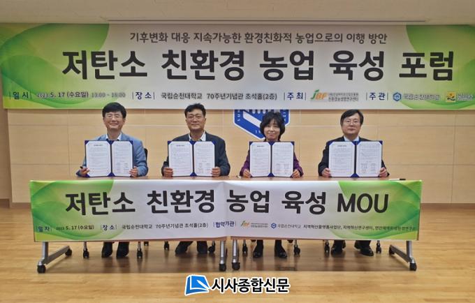 ¼øÃµ´ëÇб³ À嵿½Ä Áö¿ªÇõ½Å¿¬±¸¼¾ÅÍÀåÀº ¡°À̹ø ¡®Àúź¼Ò ģȯ°æ ³ó¾÷ À°¼º¡¯ Æ÷·³Àº ±âÈĺ¯È À§±â ½Ã´ëÀÇ ´ëÀÀÃ¥À¸·Î ģȯ°æ³ó¾÷ÀÇ ¹ßÀüÀ» À§ÇÑ Áß¿äÇÑ ÀÚ¸®¡±¶ó¸ç, ¡°¹«¾ùº¸´Ù Àü³²ÀÇ ¹Î¡¤°ü¡¤»ê¡¤ÇÐÀÌ ±âÈĺ¯È ¹× ź¼ÒÁ߸³ ´ëÀÀ °ü·Ã Çù·Â³×Æ®¿öÅ© ±¸ÃàÀ» À§ÇØ ¾÷¹«Çù¾àÀ» ü°áÇÑ °ÍÀ» °è±â·Î Àû±ØÀûÀÎ Çù·Â Ȱµ¿°ú ÇÔ²², ¼øÃµ´ëÇб³ Çлýµé¿¡°Ôµµ ´õ ¸¹Àº ±âȸ°¡ ÁÖ¾îÁö±æ ¹Ù¶õ´Ù.¡±¶ó°í ¹àÇû´Ù.