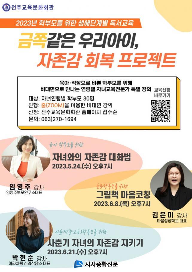 °ÀǸ¦ Èñ¸ÁÇÏ´Â Çкθ𳪠ÀüÁÖ ½Ã¹ÎÀº ´©±¸³ª ½ÅûÇÒ ¼ö ÀÖ°í °¢ °ÀÇ Àü ÀϱîÁö QRÄÚµå·Î Á¢¼ÓÇØ ÀüÁÖ±³À°¹®Èȸ°ü ´©¸®Áý(https://lib.jbe.go.kr/jec)¿¡¼ ¿øÇÏ´Â °ÀǸ¦ ½ÅûÇÒ ¼ö ÀÖ´Ù. °ÀÇ Âü¿© ¸µÅ© µîÀº °ÀÇ ´çÀÏ °³º°ÀûÀ¸·Î ¾È³»ÇÑ´Ù. °ÀÇ ÈÄ ¼º½ÇÇÏ°Ô Âü¿© ÇÑ Âü°¡ÀÚ¿¡°Ô´Â °¿¬ µµ¼¸¦ ¼±¹°·Î ÁõÁ¤ÇÒ ¿¹Á¤ÀÌ´Ù.