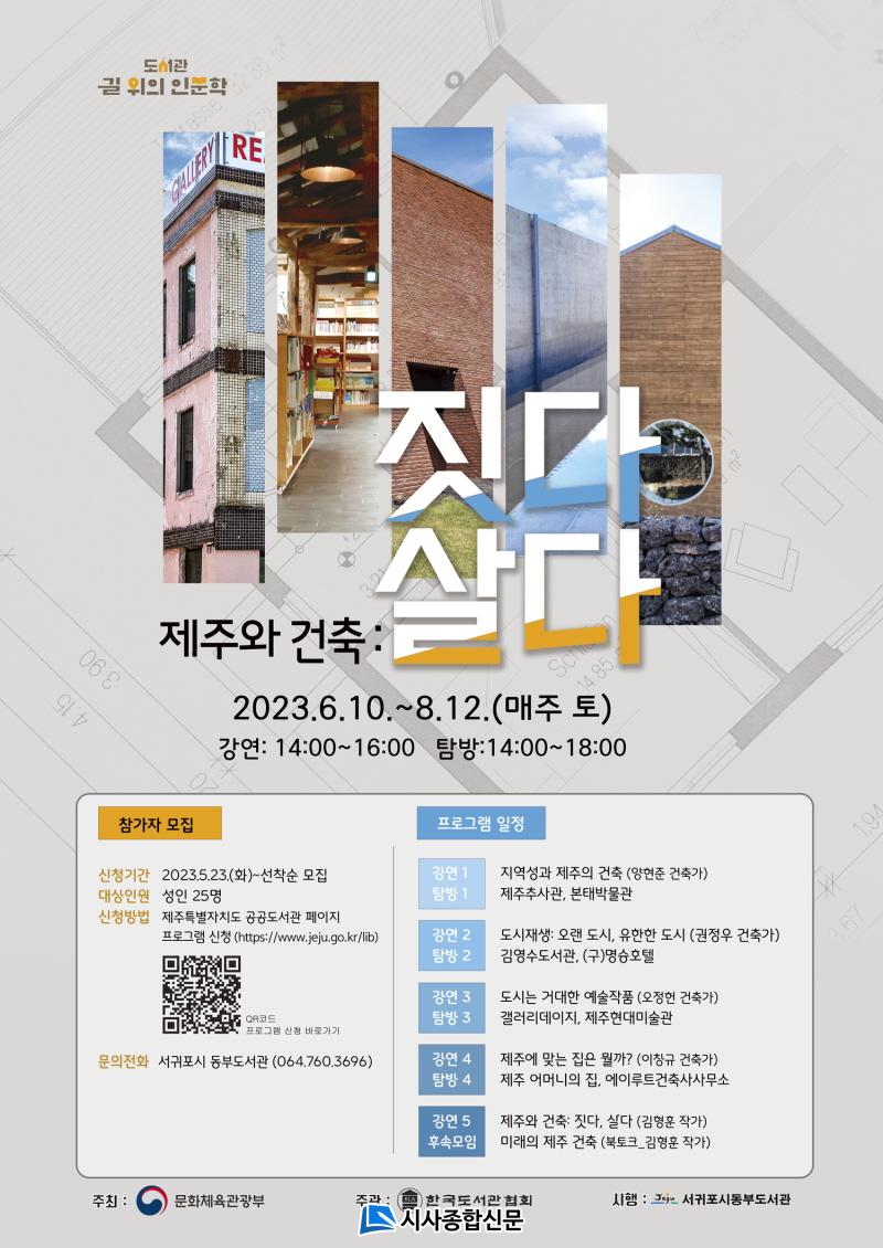 <Á¦ÁÖ¿Í °ÇÃà: Áþ´Ù, »ì´Ù>´Â ÇöÀç Á¦ÁÖ¿¡¼ »ì°í Á¦ÁÖ¿¡¼ °ÇÃà Ȱµ¿À» Çϰí ÀÖ´Â Á¦ÁÖ°ÇÃà°¡µéÀÌ ¹Ù¶óº¸´Â ¡®°ÇÃ࡯ÀÇ º»Áú°ú Á¦ÁÖÀÇ ÀÚ¿¬°ú ¿ª»ç¸¦ ´ã°í Àִ¡®Á¦ÁÖ´Ù¿òÀ» °®´Â °ø°£¡¯À¸·Î¼ Á¦ÁÖ °ÇÃàÀÇ °¡Ä¡¸¦ ÀçÁ¶¸íÇÏ´Â ½Ã°£À» °®°íÀÚ ±âȹÇÏ¿´´Ù.
