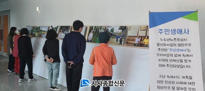 ¡®¸¶À» ÁֹΠ»ý¾Ö»ç¡¯´Â ³ëµ¿¸é ³óÃÌ Áß½ÉÁö Ȱ¼ºÈ »ç¾÷ Áö¿ª ¿ª·® °È»ç¾÷ÀÇ ÀÏȯÀ¸·Î ÃßÁøµÆ´Ù. Àü½Ã ÀÛǰÀº ³ëµ¿¸é¿¡ °ÅÁÖÇÏ´Â 56°¡±¸ÀÇ ÁֹΠ»ý¾Ö Àü¹ÝÀ» »çÁø°ú ±Û·Î ´ã¾Æ³Â´Ù. ƯÈ÷, ¾î¸£½ÅµéÀÇ ¸»°ú »çÅõ¸®¸¦ ±×´ë·Î ±â·ÏÇØ Áö¿ª ¹æ¾ð°ú ÇâÅä ¾ð¾î¸¦ ±â·Ï․º¸Á¸Çß´Ù.