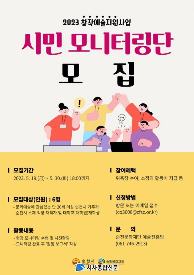 ¼øÃµ¹®ÈÀç´Ü °ü°èÀÚ´Â ¡°¸ð´ÏÅ͸µ´Ü ¿î¿µÀ¸·Î âÀÛ¿¹¼úÁö¿ø»ç¾÷¿¡ ´ëÇÑ ½Ã¹ÎµéÀÇ ´Ù¾çÇÑ ÀǰßÀ» ¼ö·ÅÇÏ°í »ç¾÷¿¡ ´ëÇÑ °ü½ÉÀ» Á¦°íÇÒ ¿¹Á¤¡±À̶ó¸ç, ¡°¹®È¿¹¼ú ¸ð´ÏÅ͸µ Ȱµ¿¿¡ °ü½É ÀÖ´Â ½Ã¹Î ¿©·¯ºÐÀÇ ¸¹Àº Âü¿© ¹Ù¶õ´Ù¡±°í ¹àÇû´Ù.