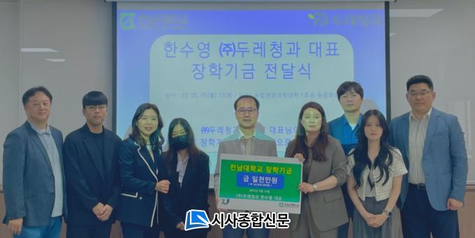 [½Ã»çÁ¾ÇսŹ® = ¿À½ÂÅà ±âÀÚ] ¢ßµÎ·¹Ã»°ú ÇѼö¿µ ´ëÇ¥°¡ Àü³²´ëÇб³ ³ó¾÷°æÁ¦Çаú¿¡ ÀåÇÐ±Ý 1õ¸¸ ¿øÀ» ±âºÎÇß´Ù.
