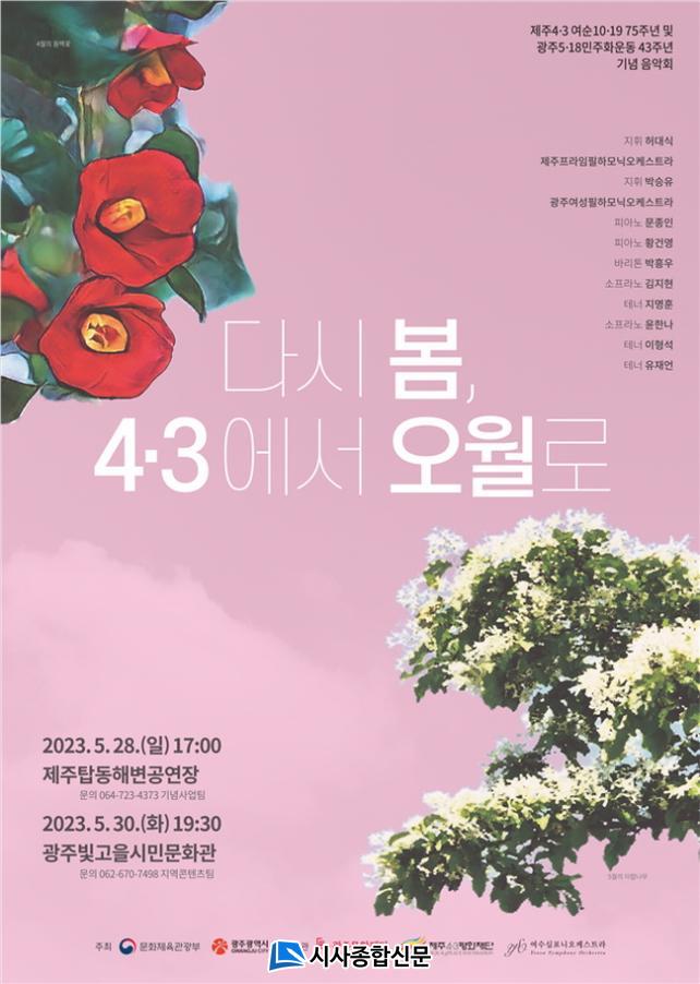 ÇÑÆí, ¡®Á¦ÁÖ4‧3, ¿©¼ø10‧19»ç°Ç 75ÁÖ³â ¹× ±¤ÁÖ5‧18¹ÎÁÖȿ 43Áֳ⠱â³ä À½¾Çȸ¡¯ ±¤ÁÖ °ø¿¬Àº ¿À´Â 5¿ù 30ÀÏ(È) Àú³á 7½Ã 30ºÐ ±¤ÁÖ ºû°íÀ»½Ã¹Î¹®È°ü¿¡¼ ÆîÃÄÁö°í, ¿©¼ö °ø¿¬Àº ¿À´Â 10¿ù 11ÀÏ(¼ö) Àú³á 7½Ã ¿©¼ö GS¿¹¿ï¸¶·ç ´ë±ØÀå¿¡¼ ÁøÇàµÉ ¿¹Á¤ÀÌ´Ù.