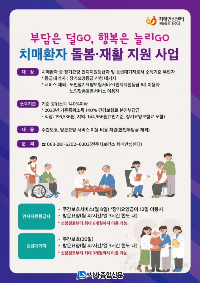 ÀüÁֽú¸°Ç¼Ò´Â ÀüÁÖ½ÃÄ¡¸Å¾È½É¼¾ÅÍ¿¡ Ä¡¸ÅȯÀÚ·Î µî·ÏµÈ Áö¿ª ÁֹΠÁß Àå±â¿ä¾çµî±Þ ½Åû ´ë±âÀÚ ¶Ç´Â ÀÎÁöÁö¿øµî±ÞÀÚ¿¡°Ô ÁÖ°£º¸È£, ¹æ¹®¿ä¾ç ¼ºñ½º ÀÌ¿ëºñ¿ë Áö¿øÇÏ´Â ¡®Ä¡¸ÅȯÀÚ µ¹º½ÀçȰ Áö¿ø»ç¾÷¡¯À» 5¿ùºÎÅÍ ½ÃÀÛÇÏ¿´À¸¸ç, ¿¹»ê ¼ÒÁø½Ã±îÁö ¿¬Áß Áö¿øÇÒ °èȹÀÌ´Ù.