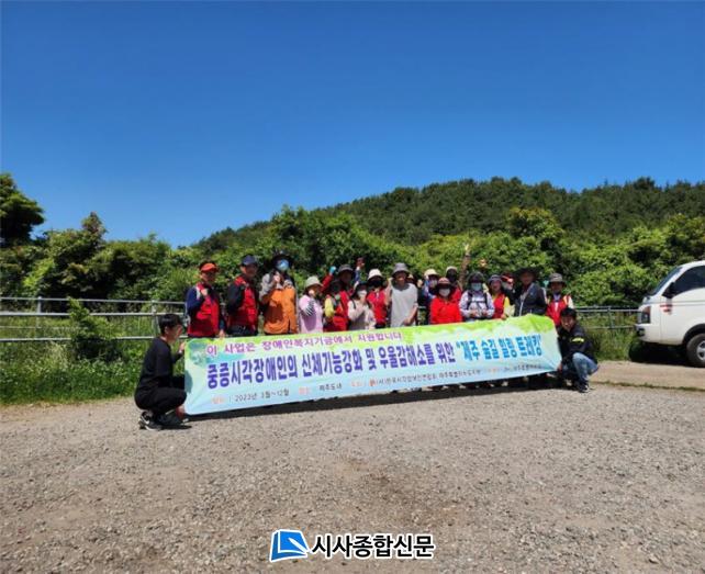 [½Ã»çÁ¾ÇսŹ® = °í¼º¹Î ±âÀÚ] (»ç)Çѱ¹½Ã°¢Àå¾ÖÀο¬ÇÕȸ Á¦ÁÖÆ¯º°ÀÚÄ¡µµÁöºÎ(ÁöºÎÀå È«¿µµ·)¿¡¼´Â Á¦ÁÖ µµ³» ½Ã°¢Àå¾ÖÀεéÀ» À§ÇÑ ÇÁ·Î±×·¥ÀÇ ÀÏȯÀ¸·Î, ÁßÁõÀå¾ÖÀÎÀÇ ½Åü±â´É °È ¹× ¿ì¿ï°¨ ÇØ¼Ò¸¦ À§ÇÑ ¡°Á¦ÁÖ ½£±æ Èú¸µÆ®·¹Å·¡±À» ȸ¿ø, ÀÚ¿øºÀ»çÀÚ, Á÷¿ø µî 25¸íÀÌ Âü¿©ÇÏ¿© ¾ÆºÎ¿À¸§(1ȸ)À» ½ÃÀÛÀ¸·Î ù¹ßÀ» ³»µðµ±´Ù.