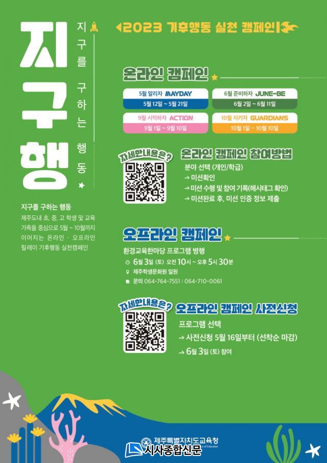 ¿ÀÇÁ¶óÀÎ Ä·ÆäÀΡ¸Á¦3ȸ Á¦ÁÖȯ°æ±³À°ÇѸ¶´ç¡¹Àº 6¿ù 3ÀÏ(Åä) Á¦ÁÖÇлý¹®È¿ø ¹× û¼Ò³âÀÇ °Å¸® ÀÏ´ë¿¡¼ ¿î¿µµÈ´Ù. ±âÈÄÇൿ ½Çõ ȯ°æ ½ºÇÇÄ¡, Ä·ÆäÀÎ¼Û Ç÷¡½Ã¸÷, û¼Ò³â ȯ°æ°ñµçº§, ±âÈÄÀ§±â ´ëÀÀ ÅäÅ© ÄܼƮ¿Í Á¦ÁÖÆ¯º°ÀÚÄ¡µµ¿Í ¿¬°èÇÑ È¯°æ±³À° ¹è¿òÅÍ Ã¼ÇèºÎ½º µîÀÌ ¿î¿µµÇ¸ç »çÀü ½Åû ¹× ÇöÀå Á¢¼ö¸¦ ÅëÇØ Âü¿©ÇÒ ¼ö ÀÖ´Ù.
