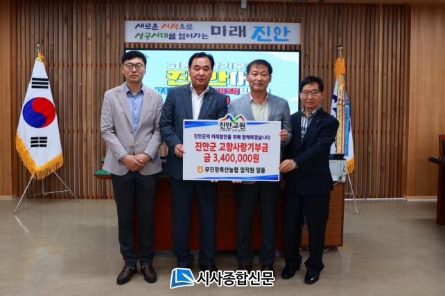 ¹«ÁøÀåÃà»ê³óÇùÀº ¼ÛÁ¦±Ù Á¶ÇÕÀåÀ» ºñ·ÔÇÑ ¹«ÁøÀåÃà»ê³óÇù ÀÓÁ÷¿ø 102¸íÀÌ ¹«ÁøÀå(¹«ÁÖ, Áø¾È, Àå¼ö)Áö¿ªÀÇ ¹ßÀüÀ» À§ÇØ 1,020¸¸¿øÀ» ¸ð±ÝÇØ Áø¾È, ¹«ÁÖ, Àå¼ö °¢ ÁöÀÚü¿¡ 340¸¸¿ø¾¿ ±âºÎÇß´Ù.