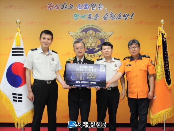[½Ã»çÁ¾ÇսŹ® = Àå¹Î±Ô ±âÀÚ] ¼øÃµ¼Ò¹æ¼(¼Àå ¹Ú»óÁø)´Â 30ÀÏ ¸¶¾à ¹üÁË ¿¹¹æÀ» À§ÇÑ 'NO EXIT ¸±·¹ÀÌ Ä·ÆäÀÎ'¿¡ µ¿ÂüÇÏ¸ç ¸¶¾à¹üÁË ±ÙÀý¿¡ ´ëÇÑ °ÇÑ ÀÇÁö¸¦ Ç¥ÇöÇß´Ù.