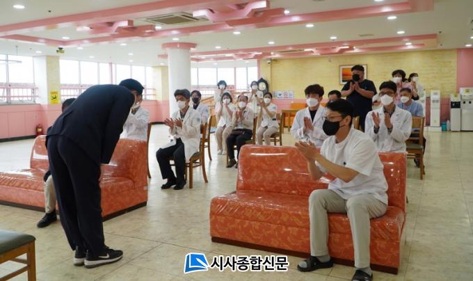 31ÀÏ ³ªÁֽÿ¡ µû¸£¸é À±º´Å ½ÃÀåÀº Àü³¯ Äڷγª19 ÀÚÀ²ÀÔ¿ø¿î¿µº´¿øÀÎ NH¹Ì·¡¾Æµ¿º´¿ø, ³ªÁÖÈ¿»ç¶û¿ä¾çº´¿øÀ» °¢°¢ ã¾Æ ÀÇ·áÁø, º´¿ø Á¾»çÀÚµéÀÇ ³ë°í¸¦ °Ý·ÁÇÏ°í ¾Ö·Î»çÇ×À» ûÃëÇß´Ù.