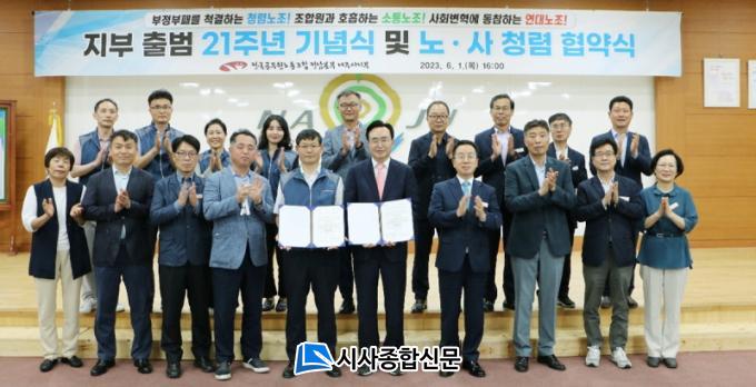 ³ªÁֽô ÃÖ±Ù ½Ãû»ç ´ëȸÀǽǿ¡¼ °ø¹«¿ø³ëÁ¶³ªÁÖ½ÃÁöºÎ¿Í ¹ÝºÎÆÐ¡¤Ã»·Å °øµ¿½Çõ Çù¾à½ÄÀ» °¡Á³´Ù°í 4ÀÏ ¹àÇû´Ù. Çù¾à½Ä¿¡´Â À±º´Å ½ÃÀå, °¿µ±¸ ºÎ½ÃÀå°ú °£ºÎ °ø¹«¿ø, ÀÓÁø±¤ ÁöºÎÀåÀ» ºñ·ÔÇÑ ³ëÁ¶ °ø¹«¿ø 150¿©¸íÀÌ Âü¼®ÇØ »óÈ£ Á¸Áß°ú ½Å·Ú¸¦ ¹ÙÅÁÀ¸·Î ÇÑ Ã»·Å ³ªÁÖ ±¸Çö¿¡ ÈûÀ» ¸ðÀ¸±â·Î Çß´Ù.